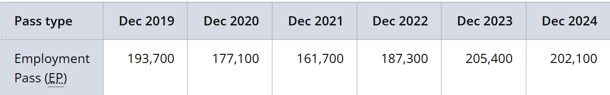 Mỗi năm, hàng trăm nghìn người nước ngoài nộp đơn xin Employment Pass (EP) để làm việc hợp pháp tại Singapore, theo thống kê của cục quản trị nhân lực MOM. Thực tế, Singapore có hơn 202,000 người đăng ký EP năm 2024.
