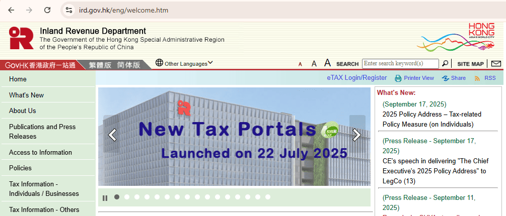 Ảnh: Trang chủ Cục thuế Hồng Kông